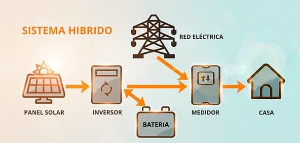Un sistema solar híbrido combina lo mejor de dos mundos: funciona con paneles solares, baterías y también con la red eléctrica. Genera tu energía, la almacena para usarla de noche o en cortes de luz y se apoya en la red cuando es necesario. Es una solución moderna, flexible y súper eficiente para tener ahorro, respaldo y energía limpia sin interrupciones.